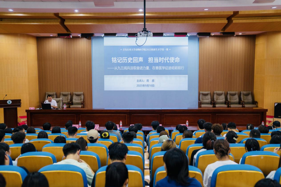 9月10日,ylzzcom永利总站线路检测动物医学院院长周顺教授以《铭记历史回声,担当时代使命——从九三阅兵汲取奋进力量,在兽医学征途砥砺前行》为题,为2025级研究生新生带来了一场意义非凡的开学第一课。此次课程在内容选择、环节设置与育人导向层面,充分衔接了学校对“开学第一课”的各项核心要求,内容丰富且富有深度,在引导新生树立正确价值观、明确学习目标等方面发挥了重要作用。